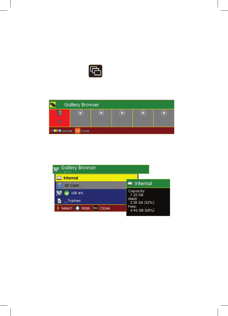 Press F1 (Red key) to display a menu that shows which of the three main memory