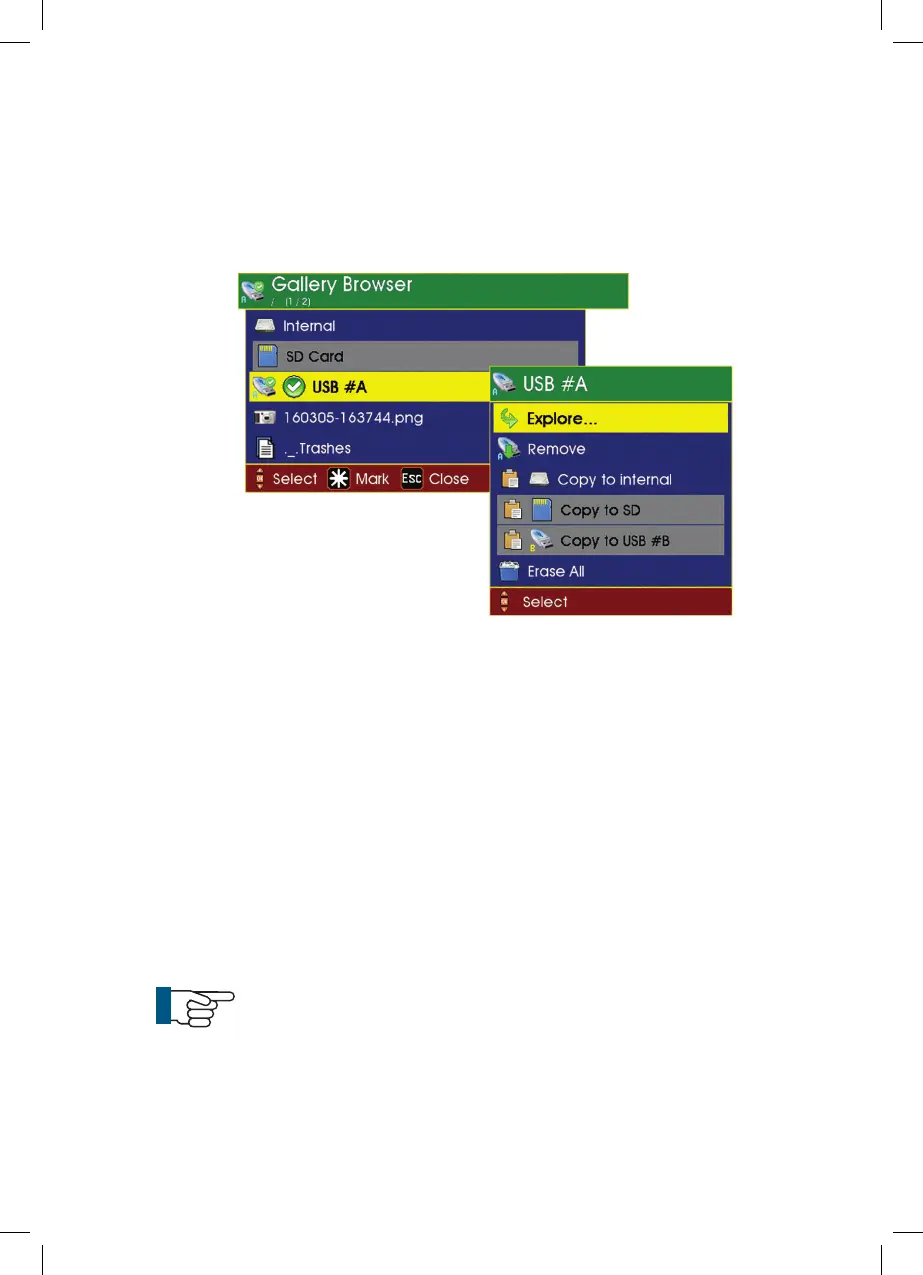 NOTE: If the selected file is a .jpg picture, then the first menu entry