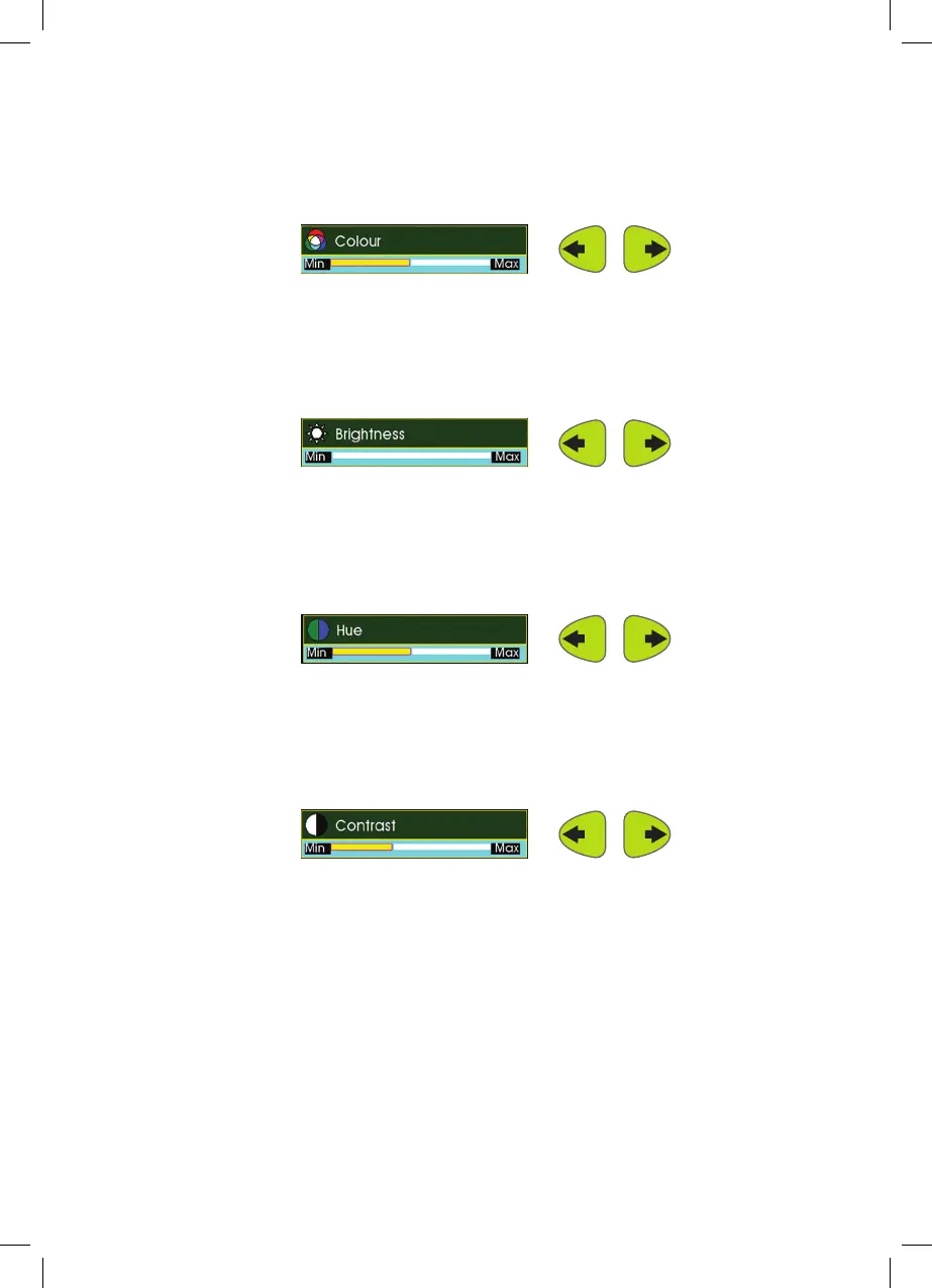 Adjusts the Hue of the picture. Press the Left Arrow or Right Arrow cursor key