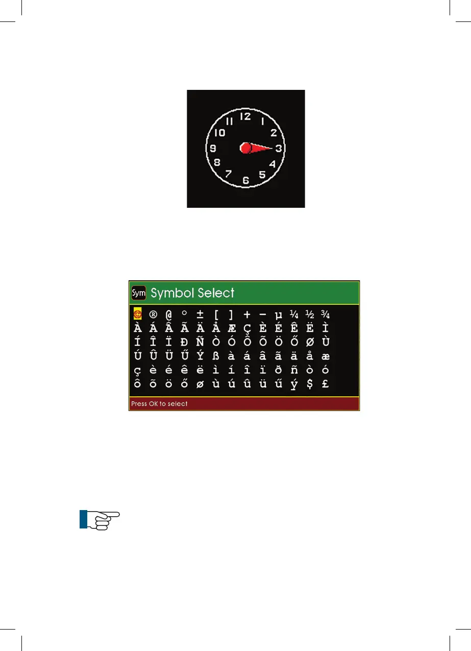 cursor keys to highlight in yellow the symbol you require. Press OK.