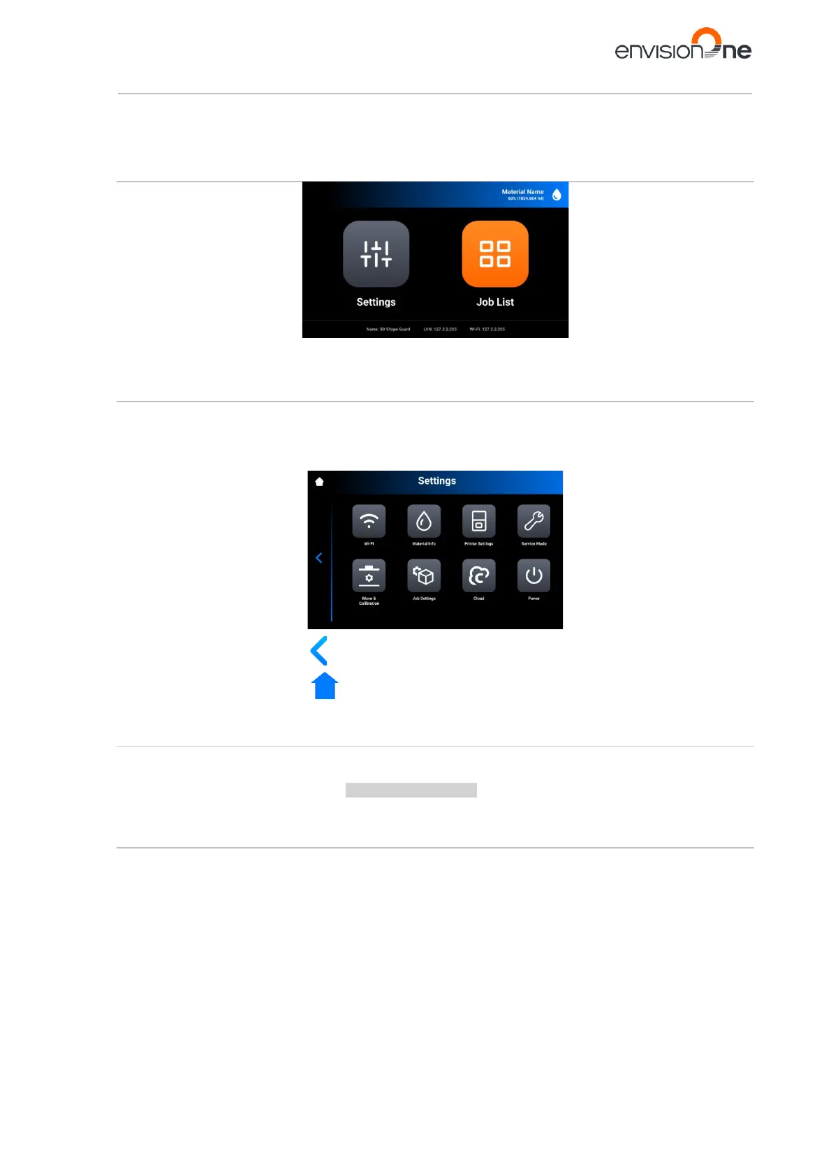 In the Control Software, there are two main menus: Settings Menu and Job List Menu.