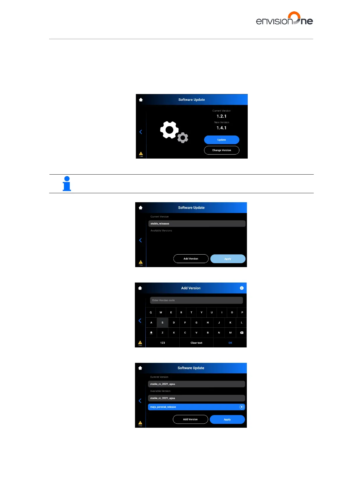 To install the custom update of the Software version: