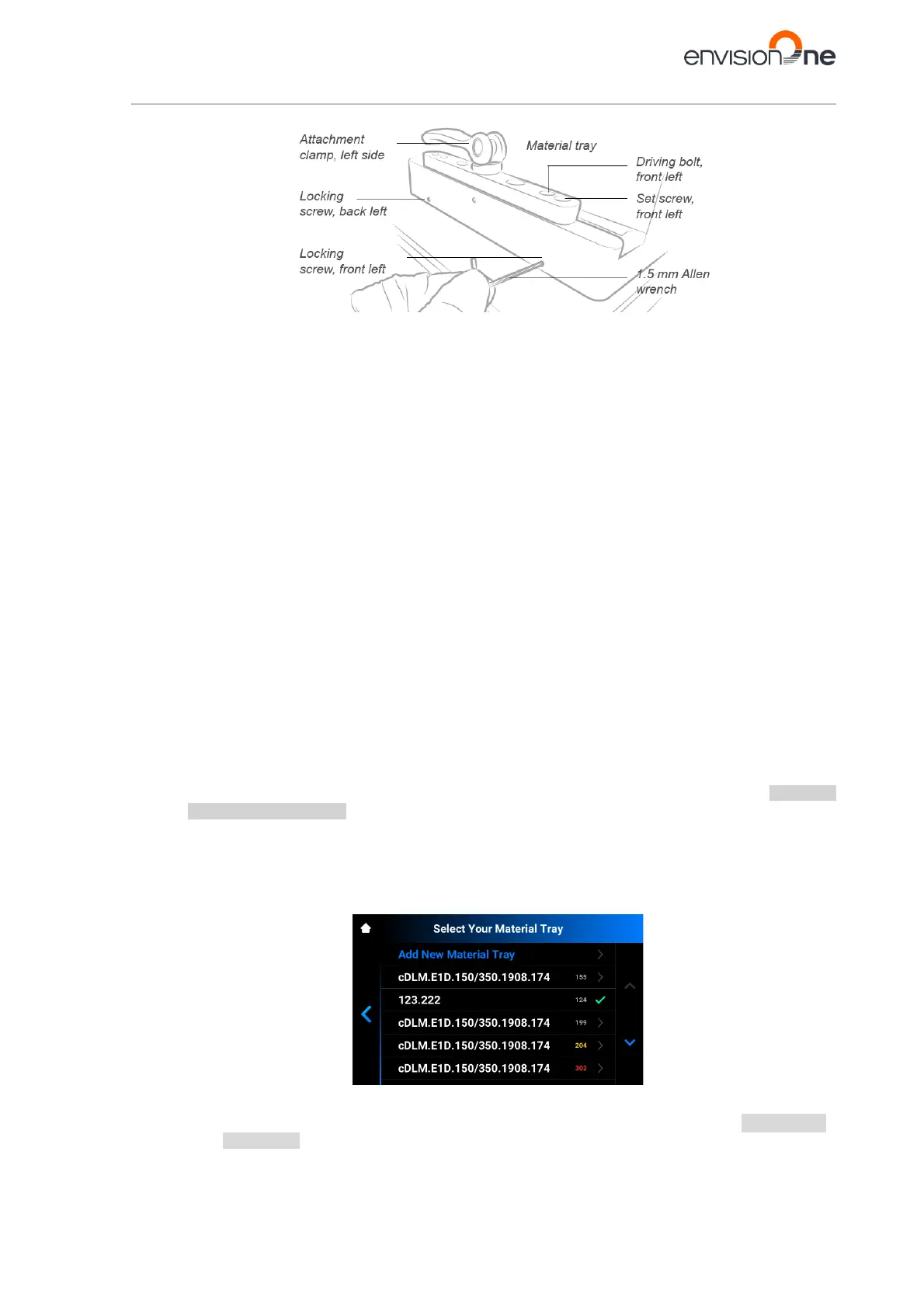• If you want to add a new material tray, proceed with the instructions specified in the Adding a new