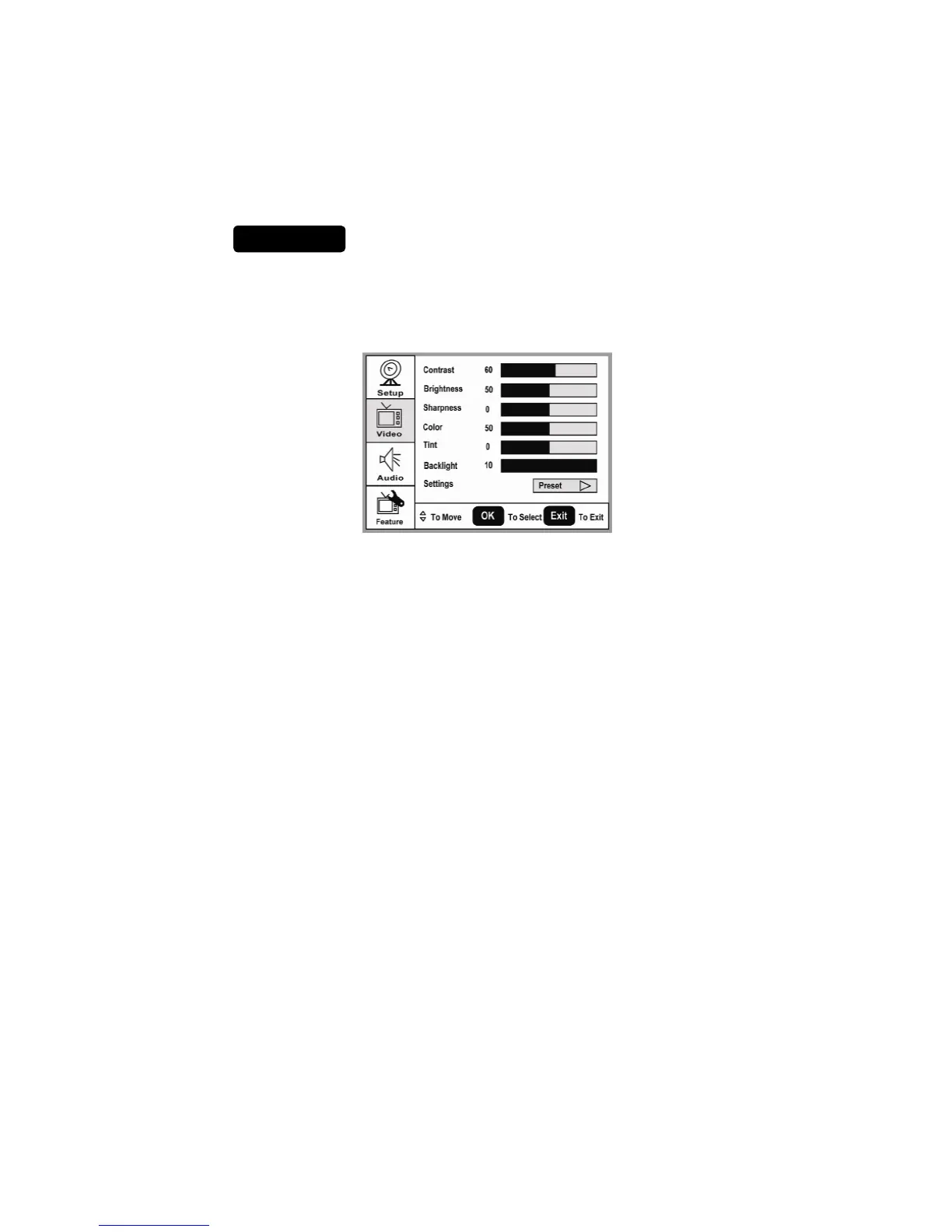 modes, the Video menu simply provides Contrast, Brightness, Back light and