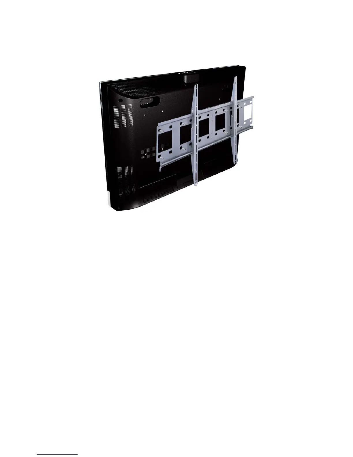 1. Place the wall mounting arm onto the back of the TV. Line up the holes of the arm with the holes in the