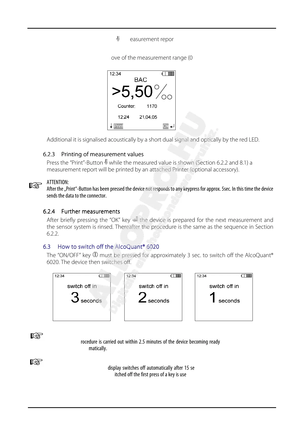 6.3 How to switch off the AlcoQuant® 6020