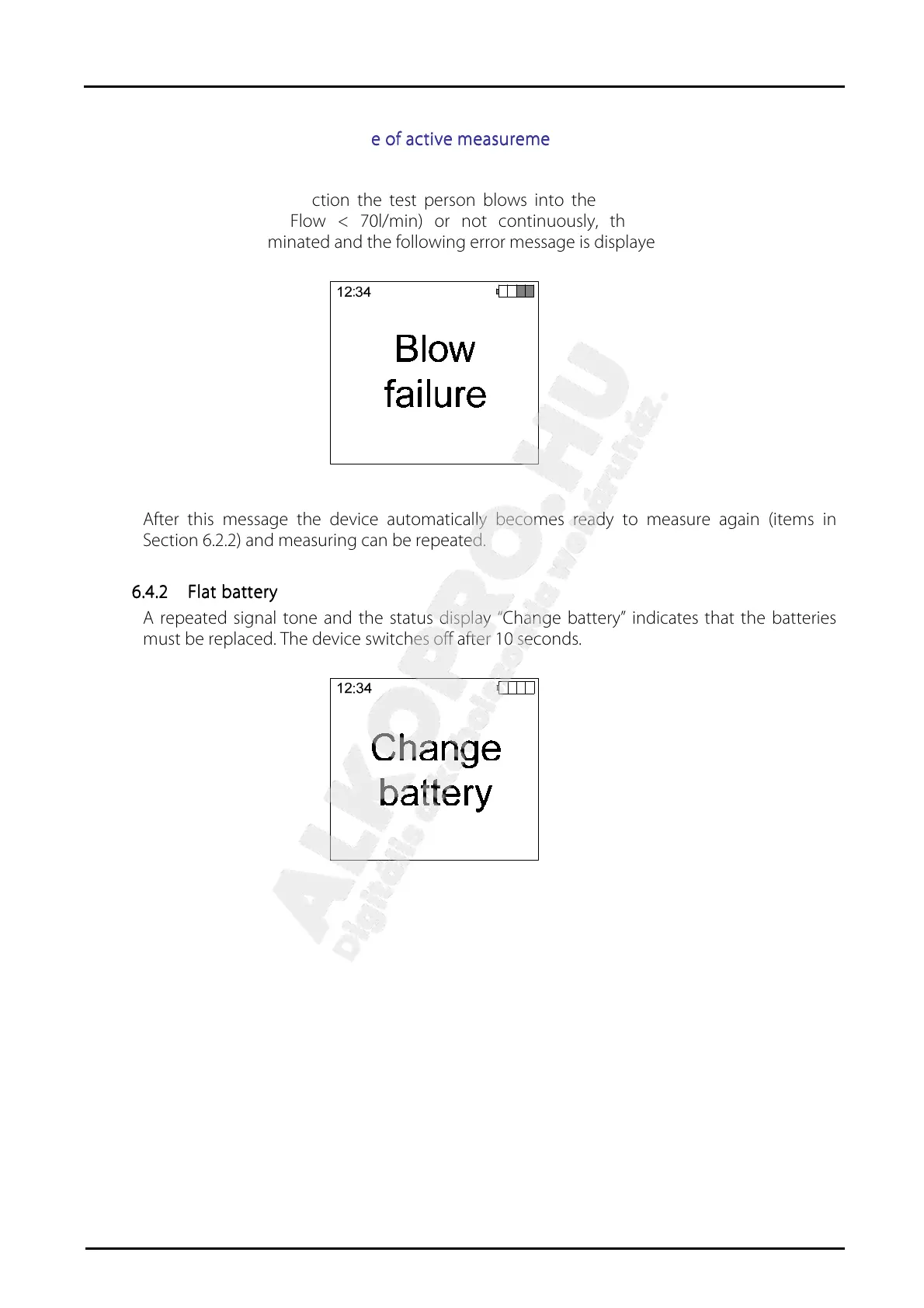must be replaced. The device switches off after 10 seconds.