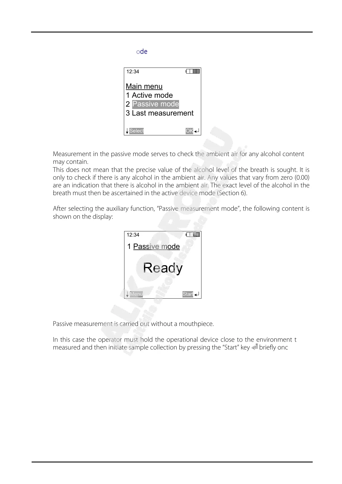 Measurement in the passive mode serves to check the ambient air for any alcohol content it