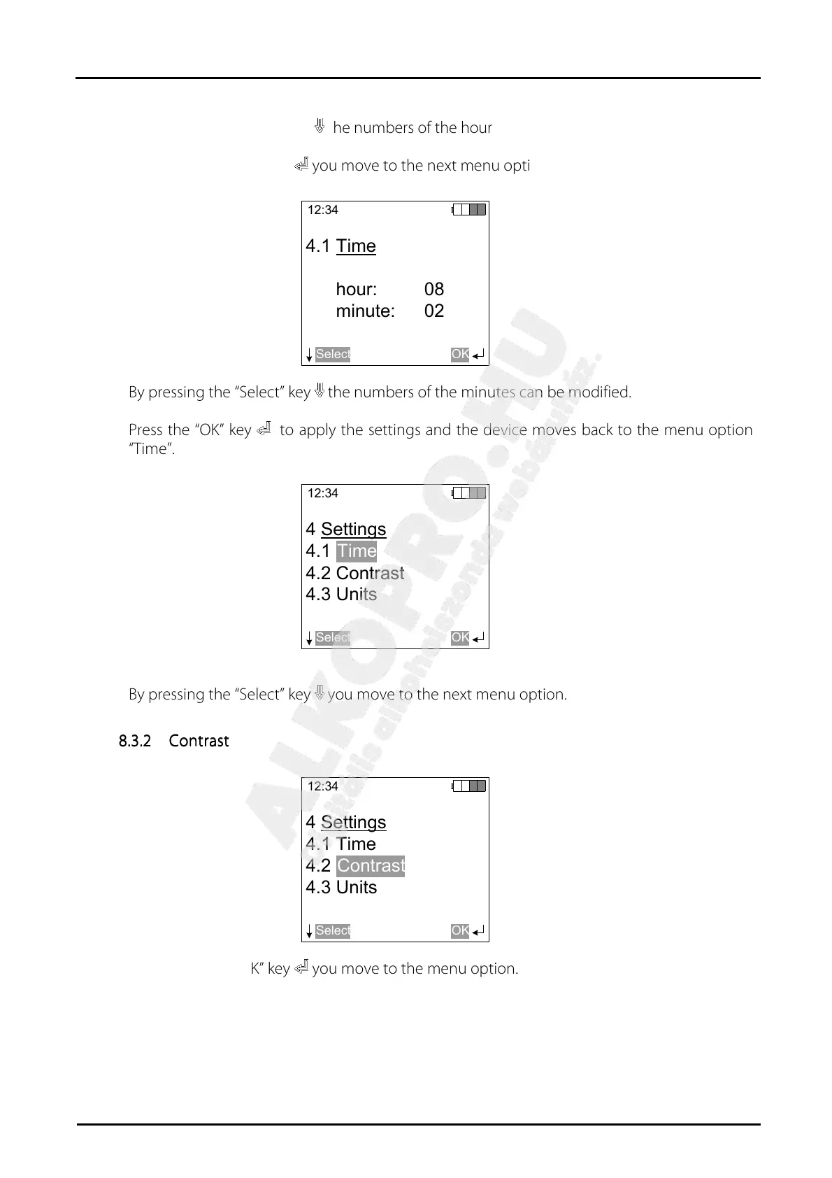 By pressing the “Select” key the numbers of the minutes can be modified.