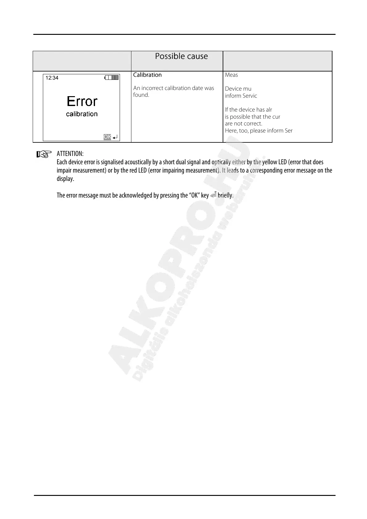 The error message must be acknowledged by pressing the “OK” key