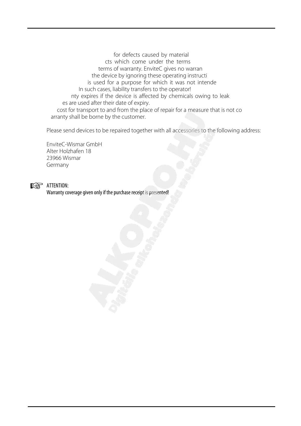 accordance with our terms of warranty. EnviteC gives no warranty if the operator jeopardises