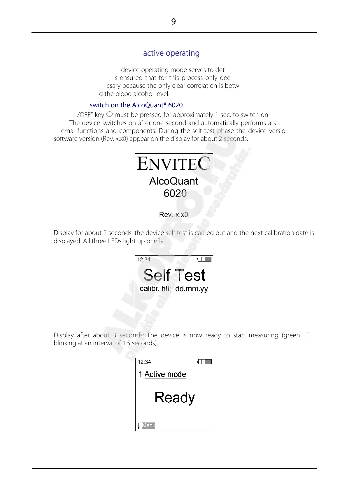 6020 The device switches on after one second and automatically performs a self test of the