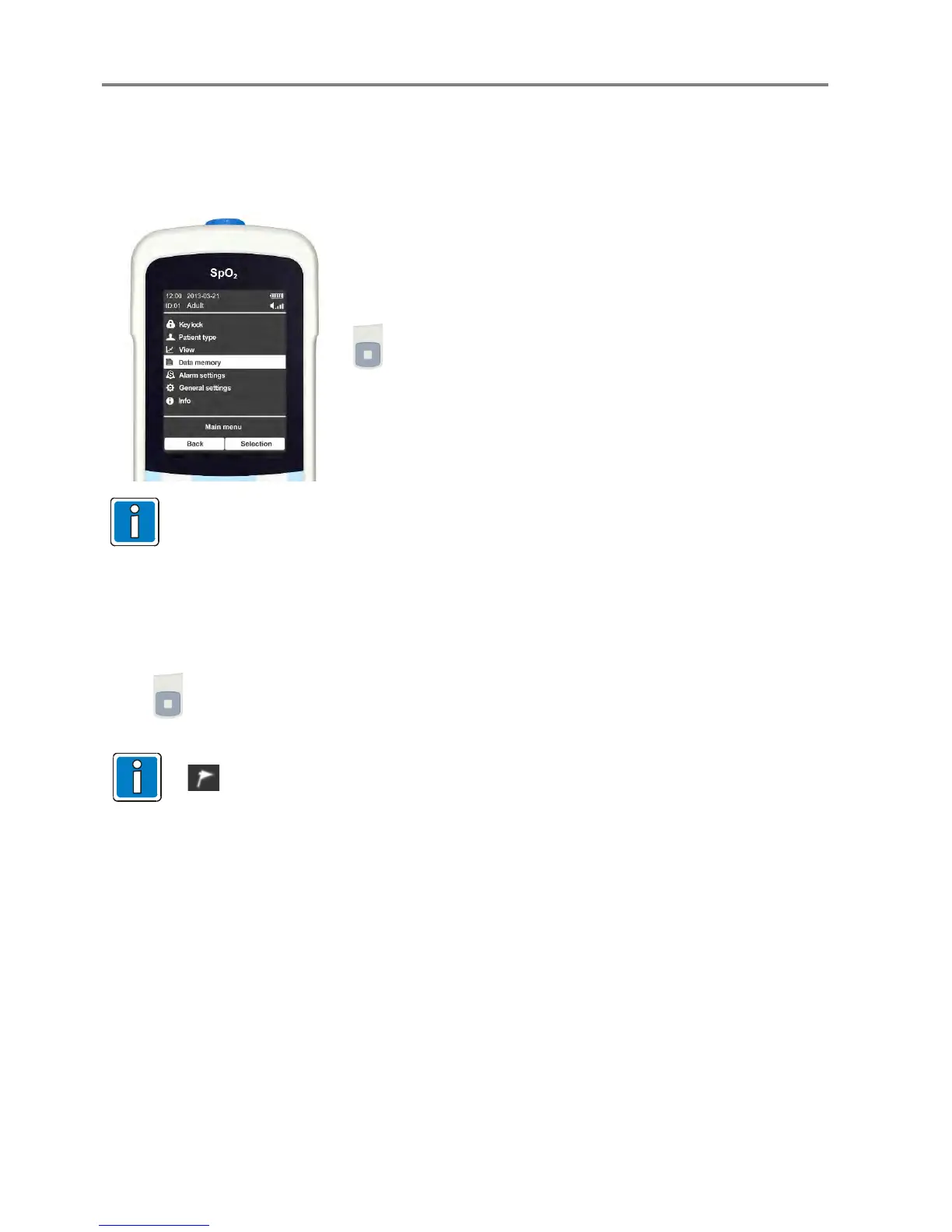 The data memory contains the data from previous measurements. These recordings are listed by ID or