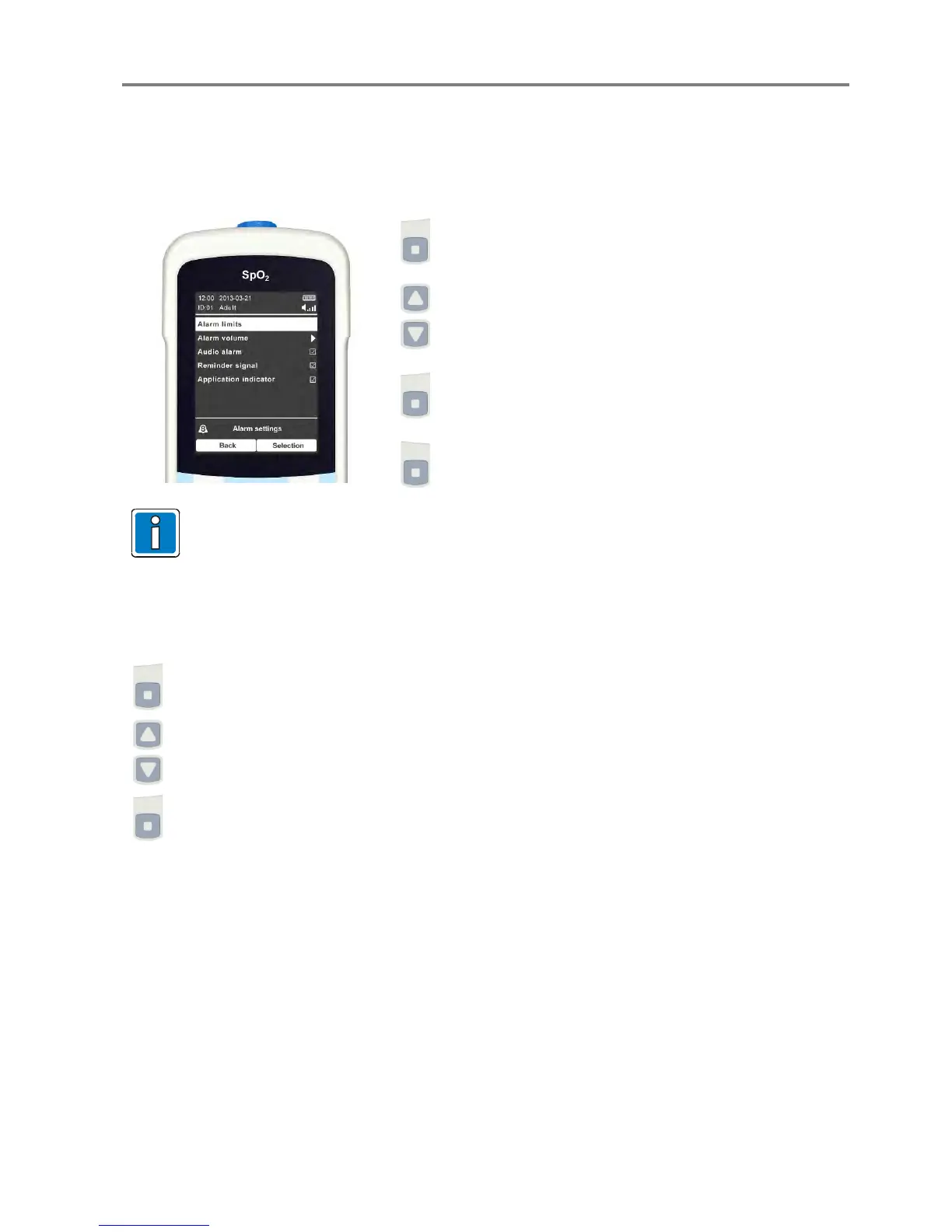 The alarm limits can also be changed with the function key 1 (left) “Alarm limits”.