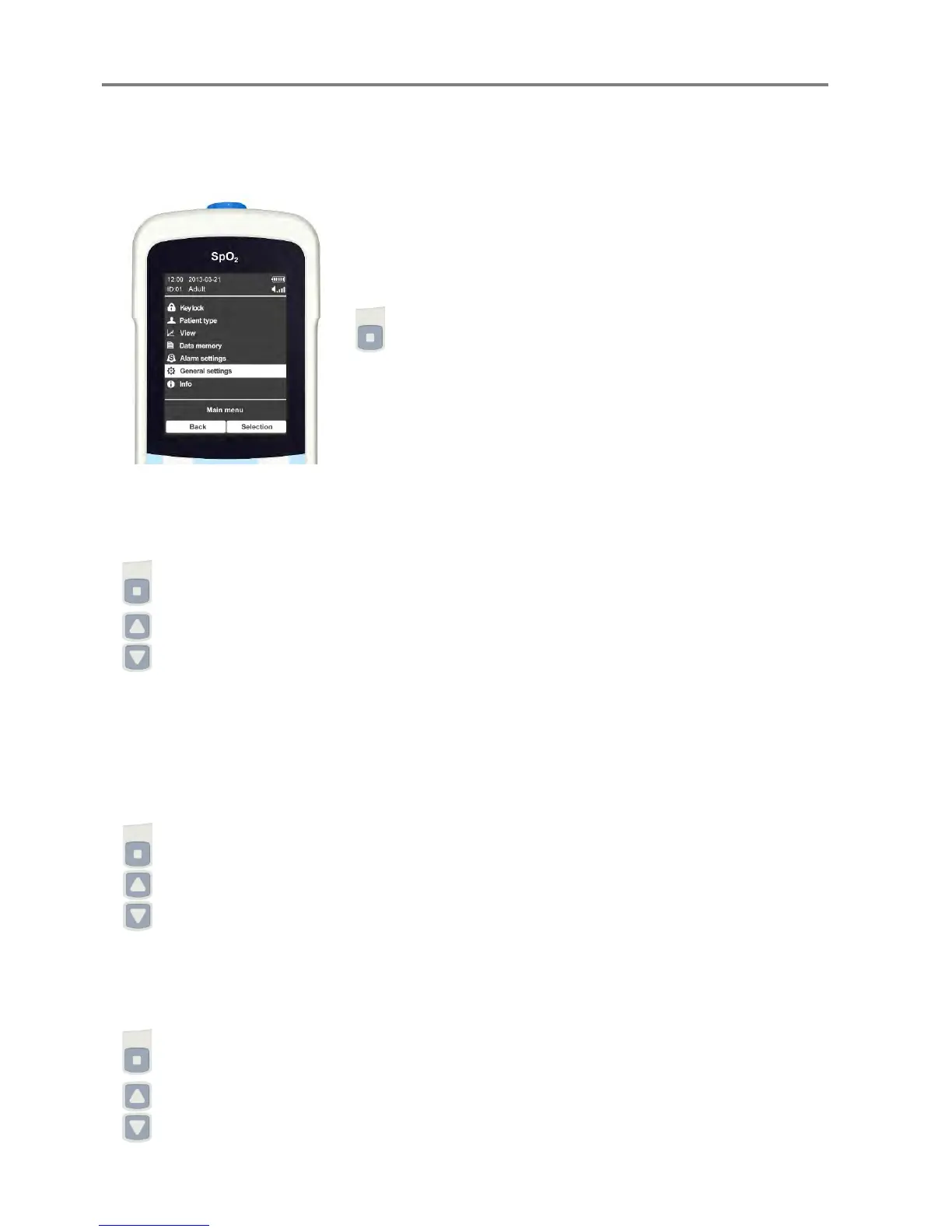 The unit's main settings can be configured in the “General settings” menu. The settings can also be configured
