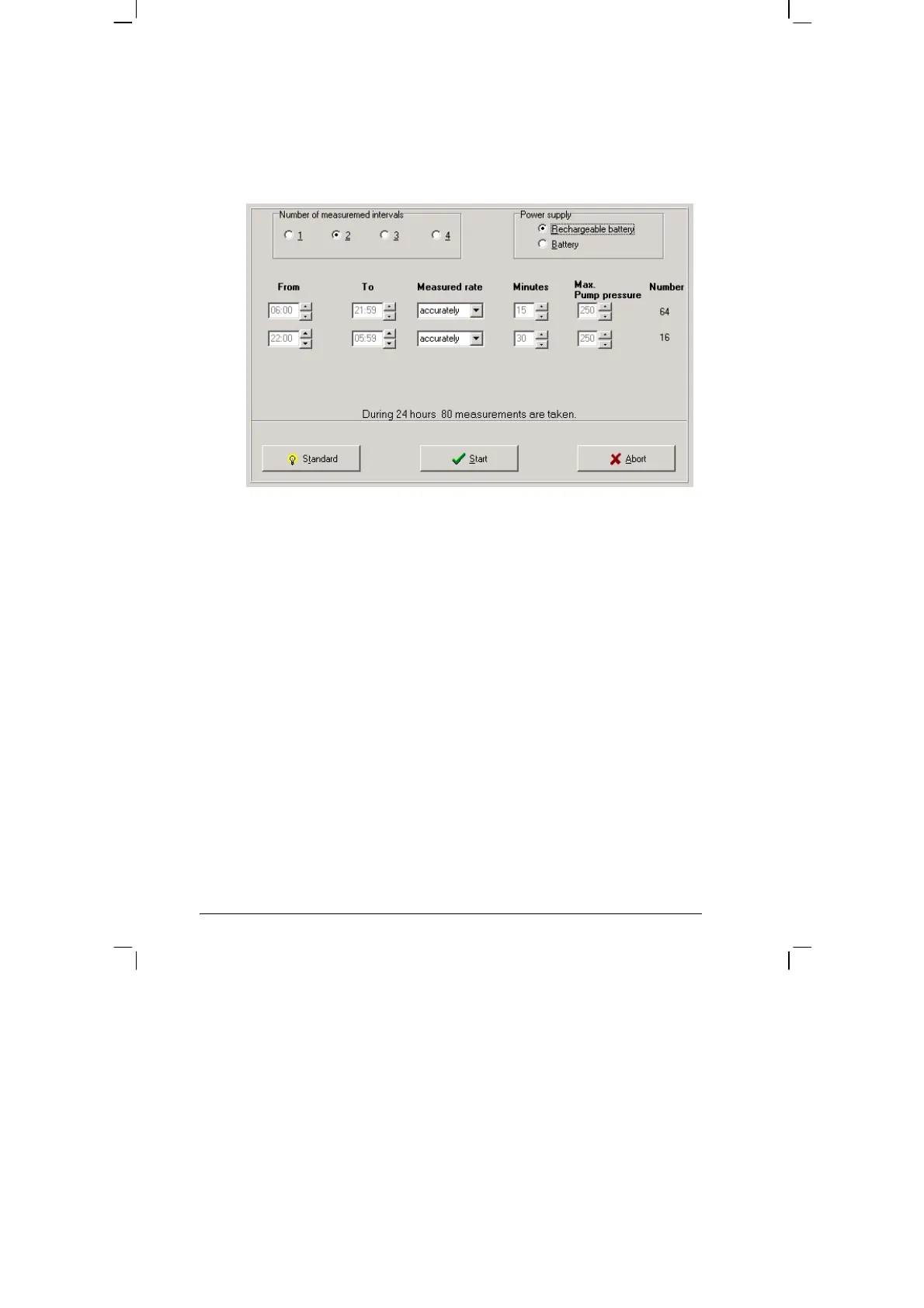 Up to 4 different measurement intervals can be selected. The standard