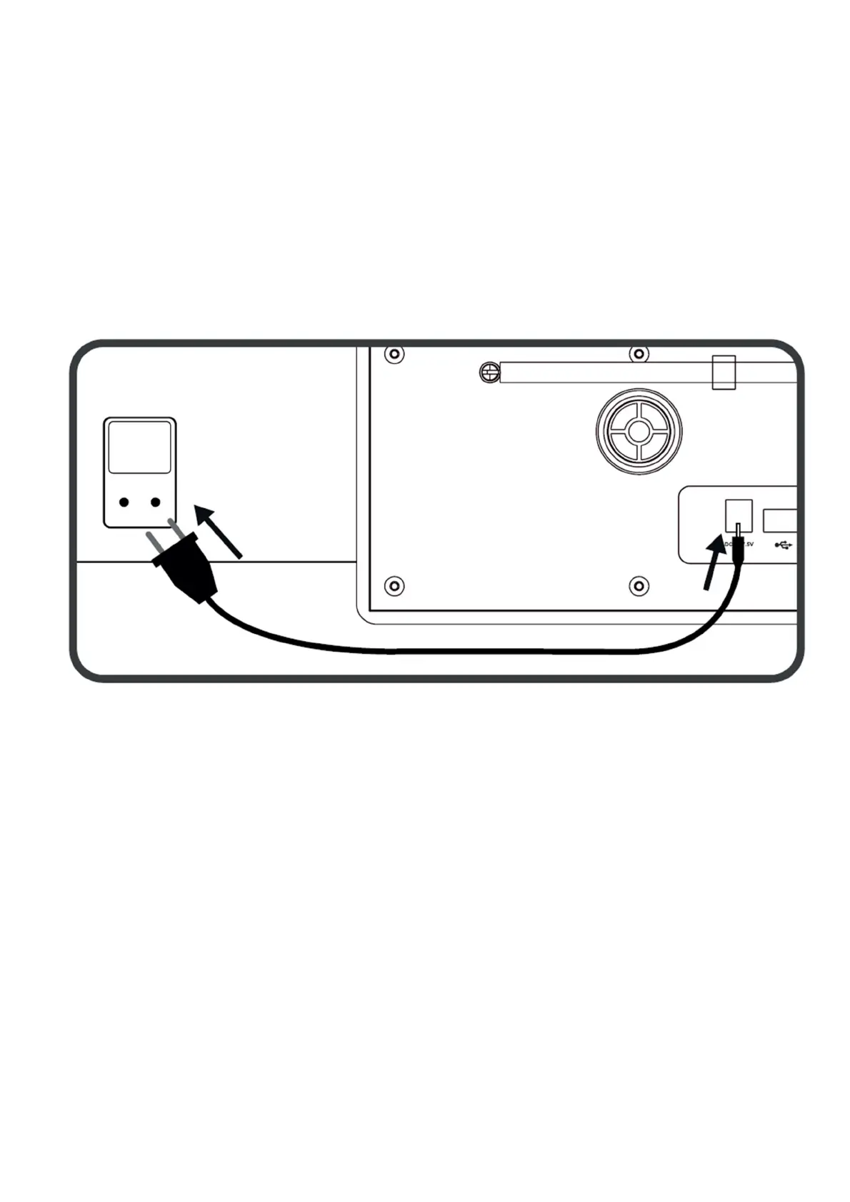 Plug the power cable to the back of the DAB radio and the power adapter to AC outlet.