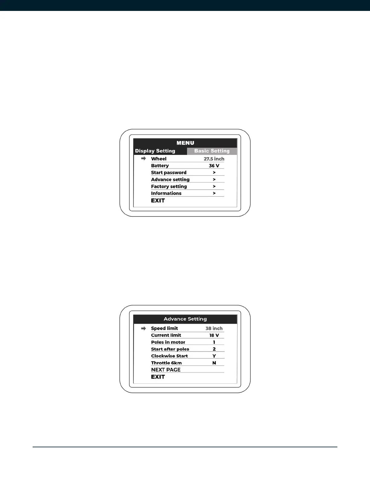 has 24V,36V,48V options along with a user-dened value option. The start password gives you the
