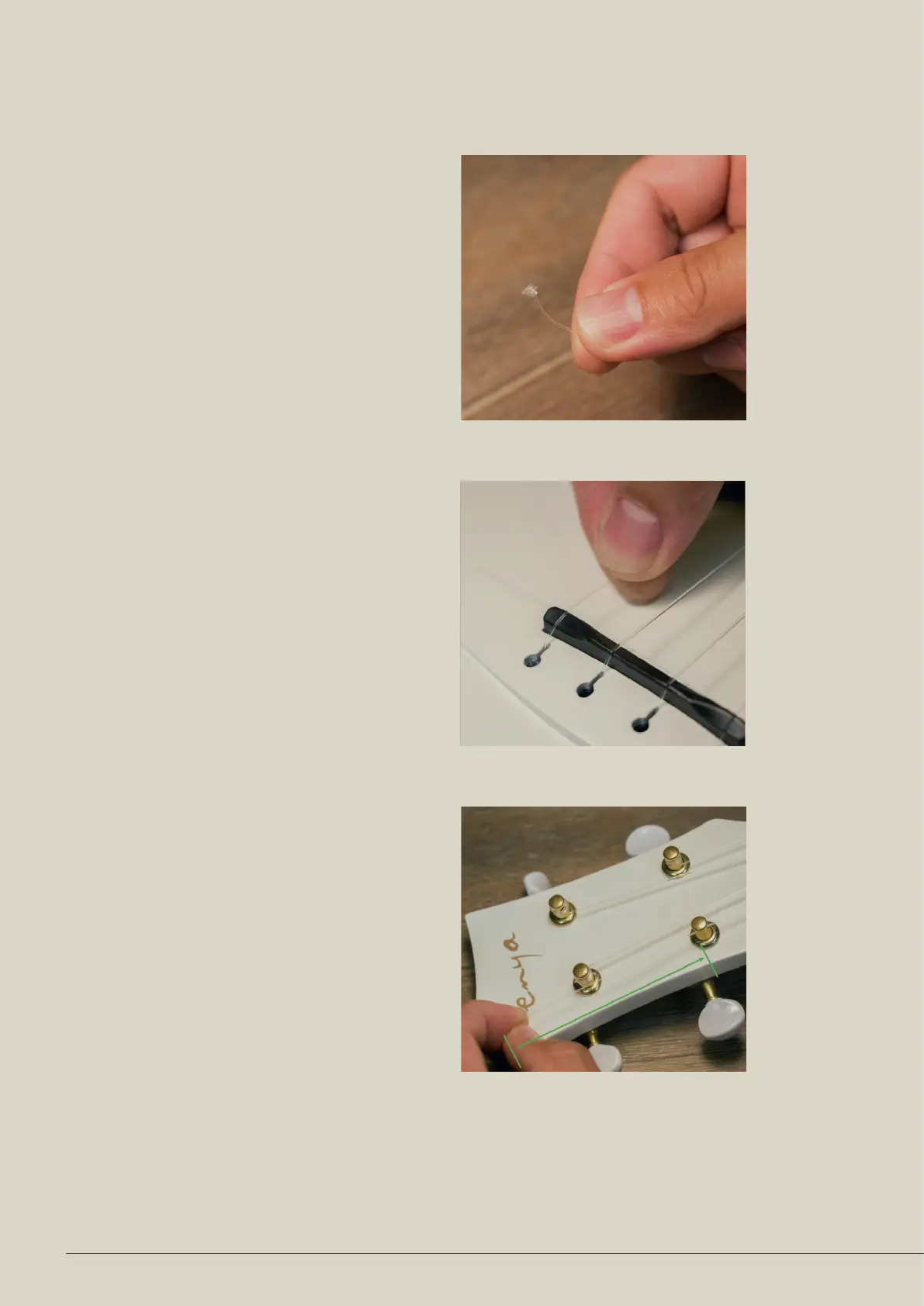 Enya Nova U - Step 4: Tie String Knot; Step 5: Insert Knot into Bridge; Step 6: Insert String into Tuning Post