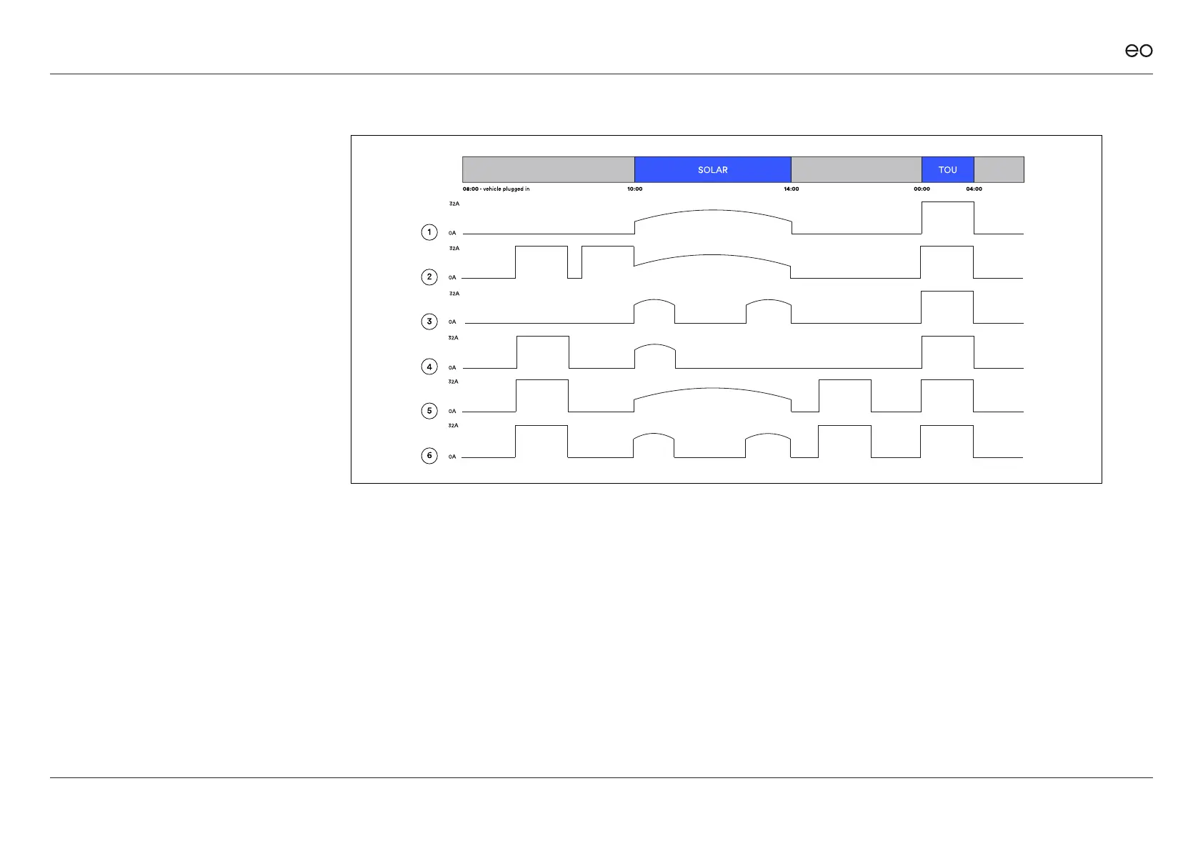 2. Play” and “Pause” pressed before solar window. “Play” pressed before Solar Charging Window – vehicle charges at 32A until solar window,