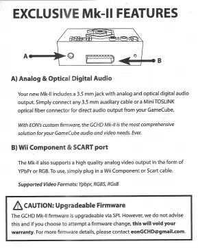 Eon GCHD Mk-II - Exclusive Mk-II Features; Analog & Optical Digital Audio Output; Wii Component & SCART Port