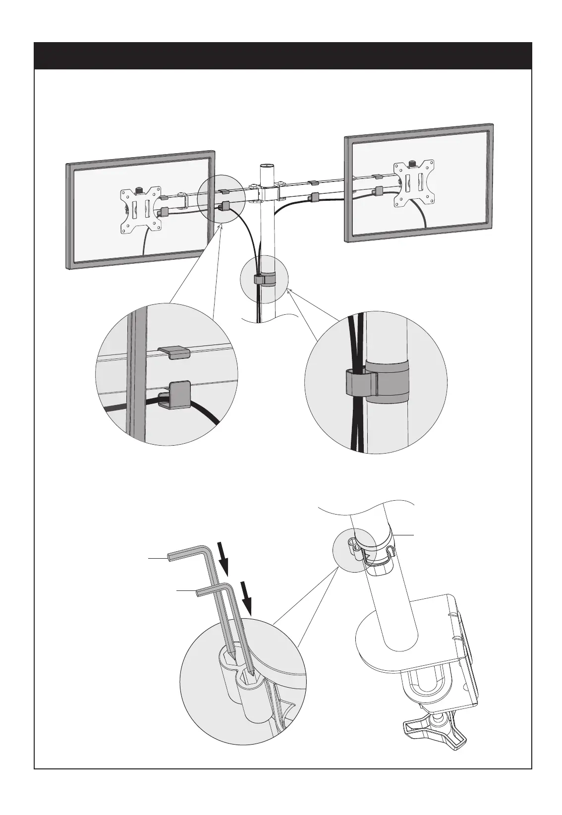 Manage cables and store Allen keys (L,M) in wire clip (E) for future use.