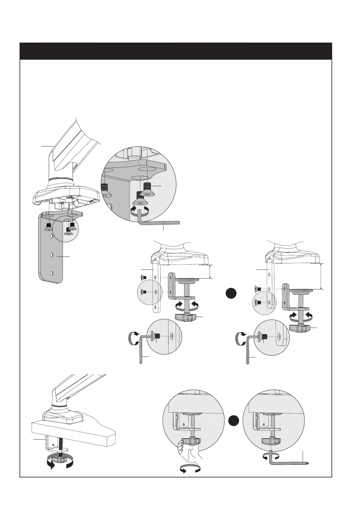 1A-3 Secure stand to desktop by tightening clamp (D) or by using 6mm allen key (M).