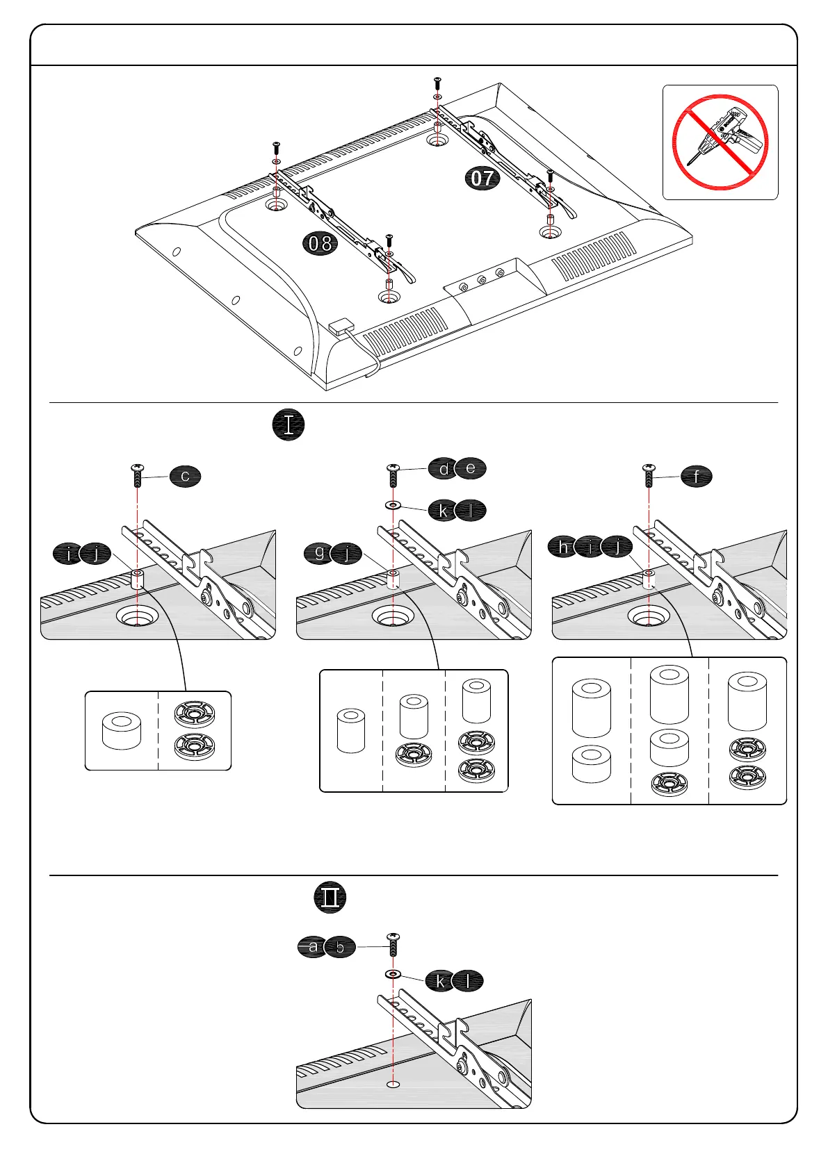 Tips: If you need to combine M6(e) or M8(c/f) screw with 2.5mm spacer(j), you have to