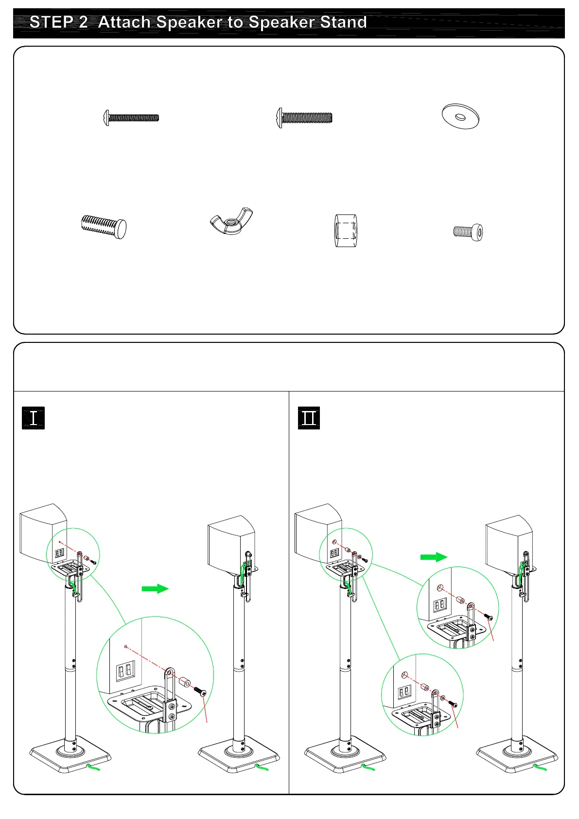 Eono PL5402-2 - STEP 2 Attach Speaker to Speaker Stand; Parts and Hardware; Option 1: Speaker Mounting for <310 mm Distance