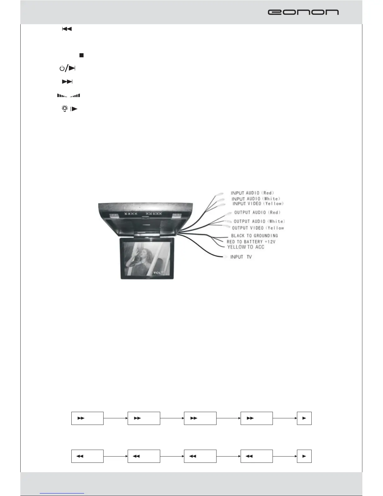 6. : Fast backward when DVD is playing: when the menu is open, the