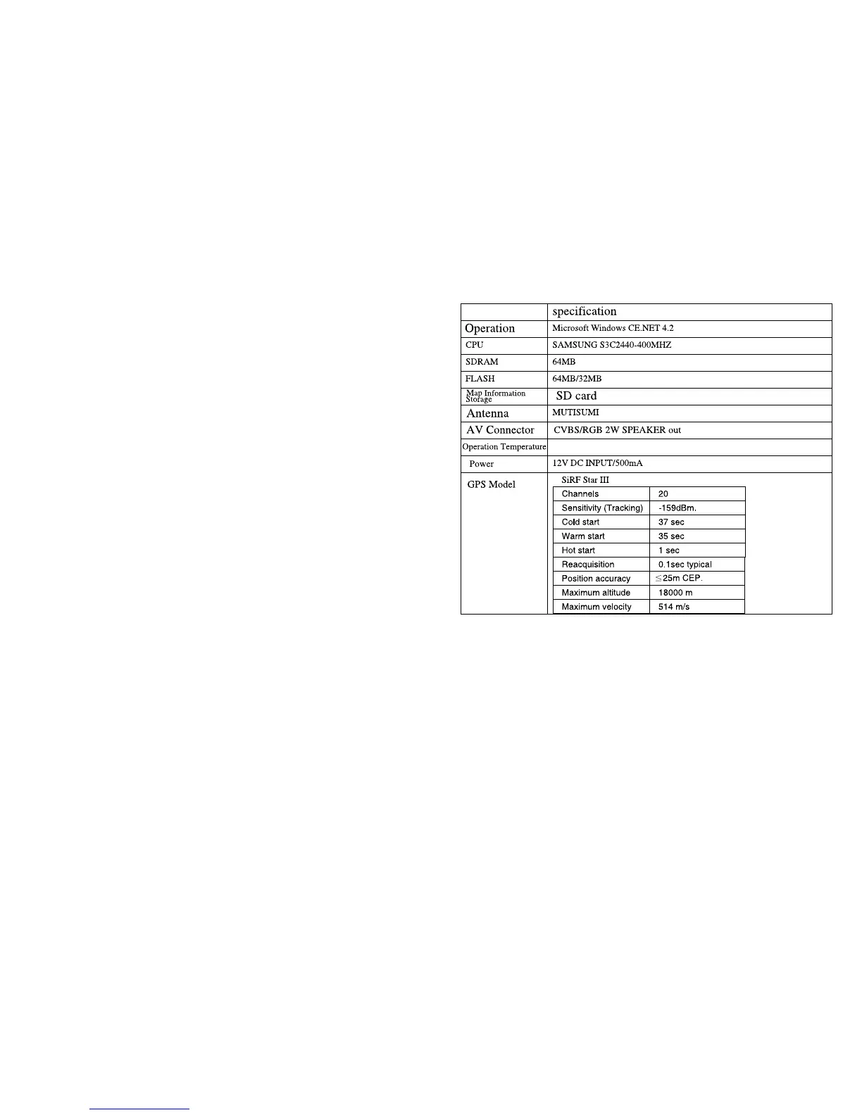 GPS SPECIFICATION
