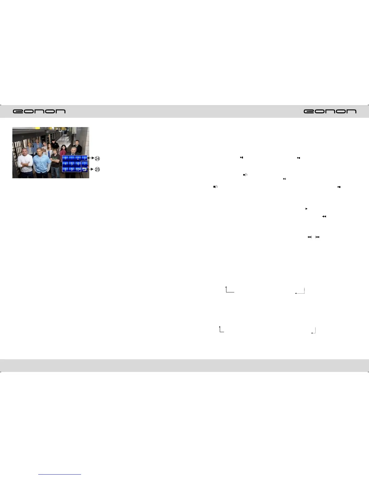 In playing mode, 1) Press button on remote control to enter the pause mode, the