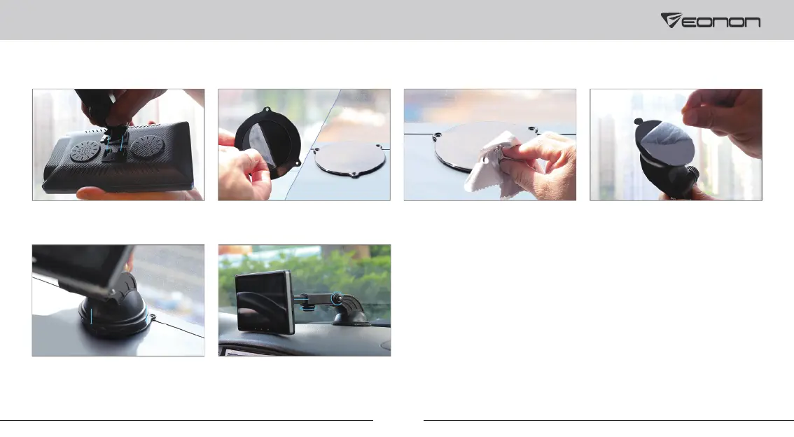 1. Install the suction cup holder. 3. Clean the suction cup mount base.