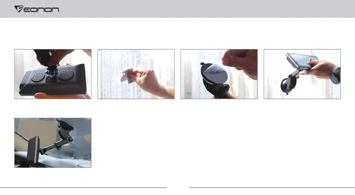 1. Install the suction cup holder. 2. Clean the windshield. 3. Remove the protective film from the