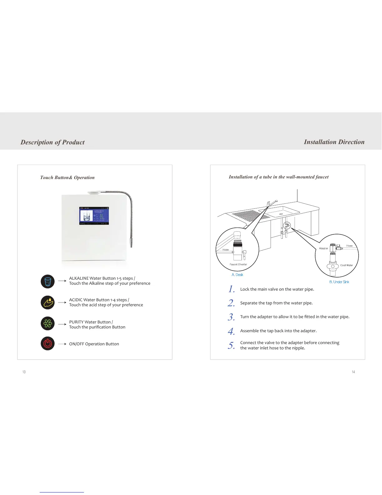 ALKALINE Water Button 1-5 steps /