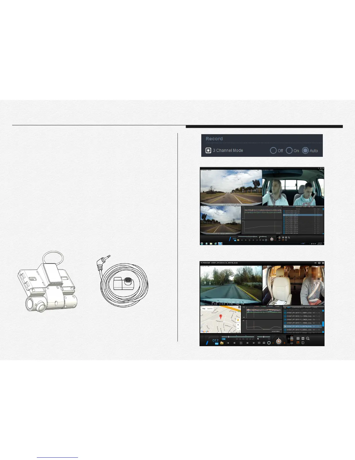 rear camera or dome camera for 3 Channels video recording.
