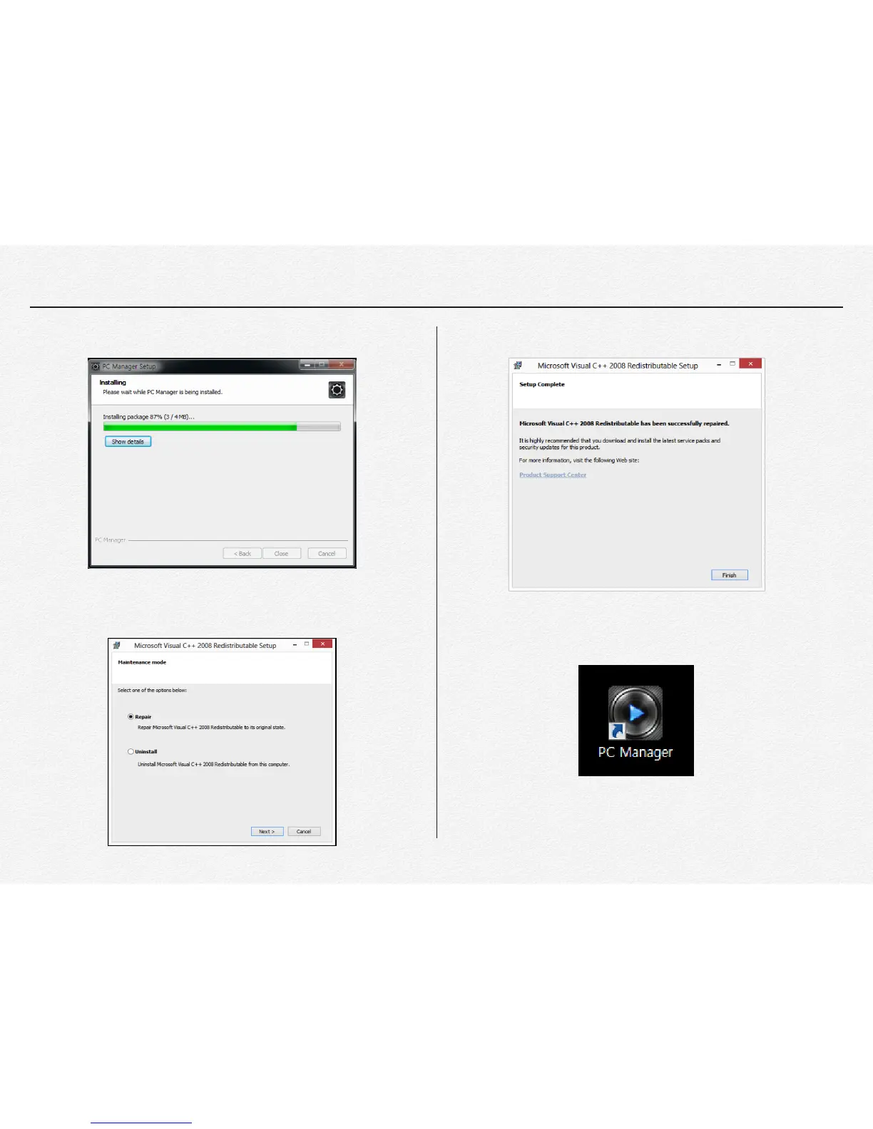6. Select ‘Repair’ for Visual C++redistributable setup and Click