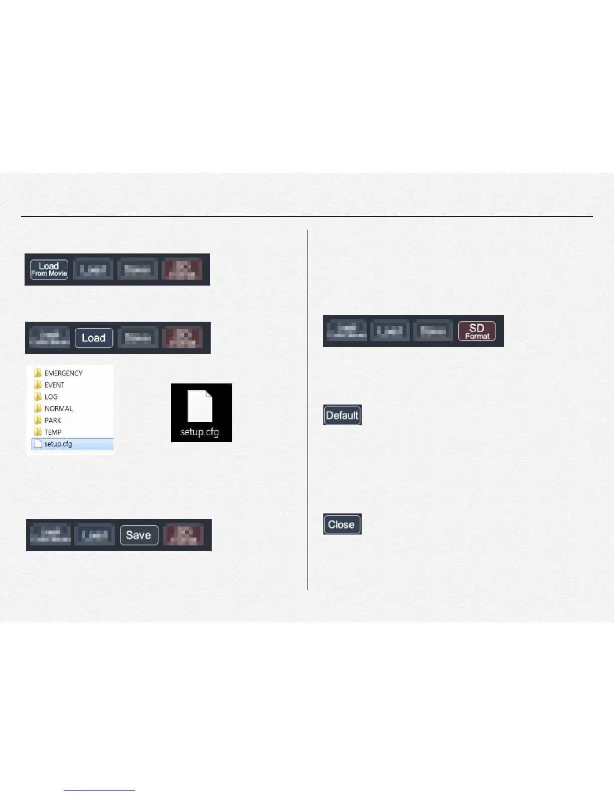 * Save: Save setting value to micro SD card or removable