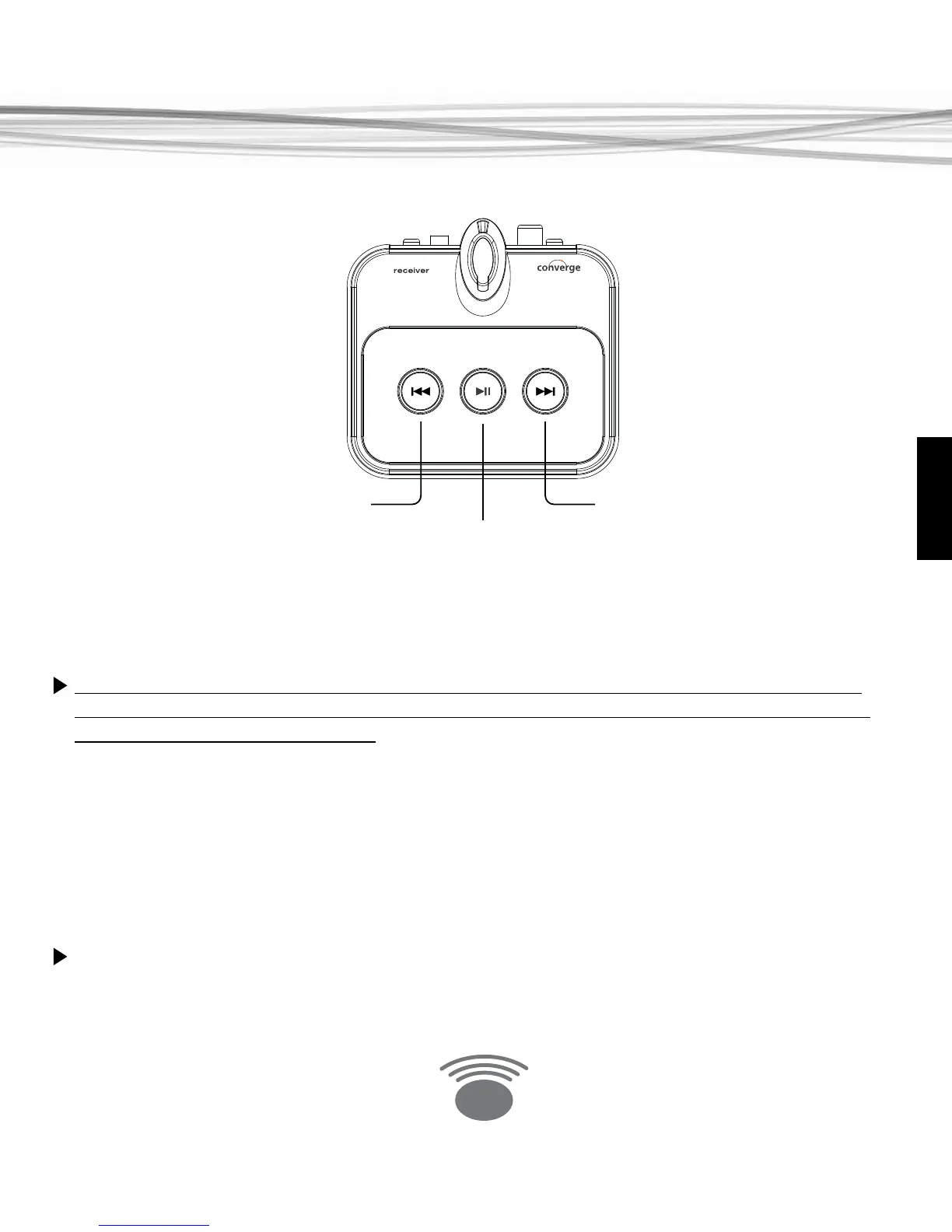 Receptor inalámbrico Converge para controlar las funciones de reproducción / pausa y avance
