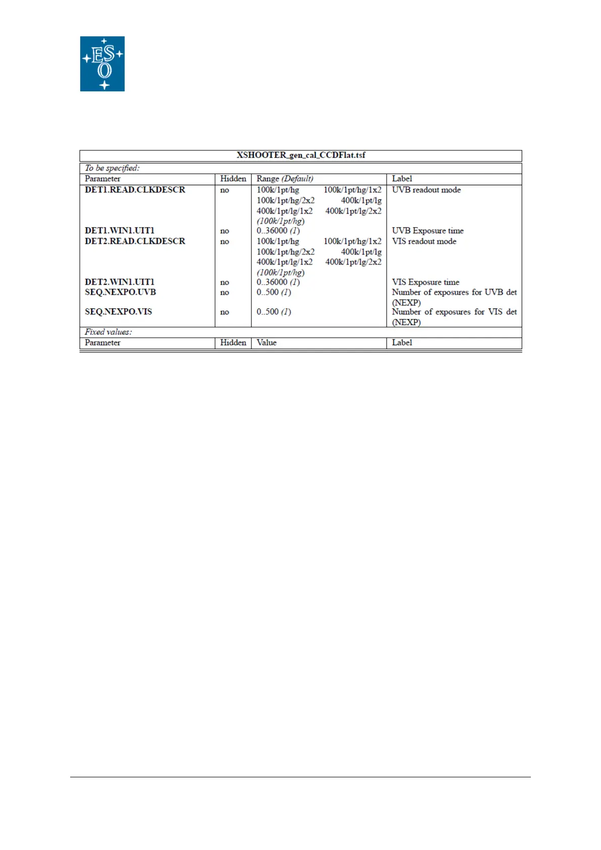 Table 70: Template for taking detector FF and biases for the linearity measurements of the