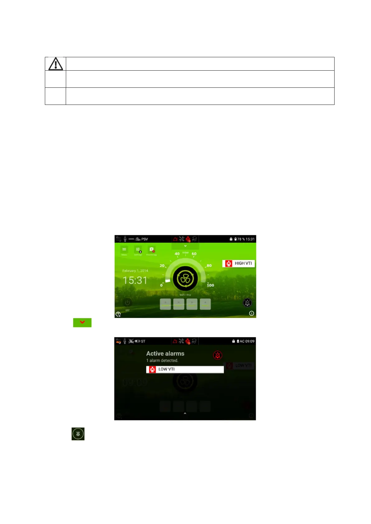 2. A message will appear on the touch screen showing the priority of the alarm and giving the