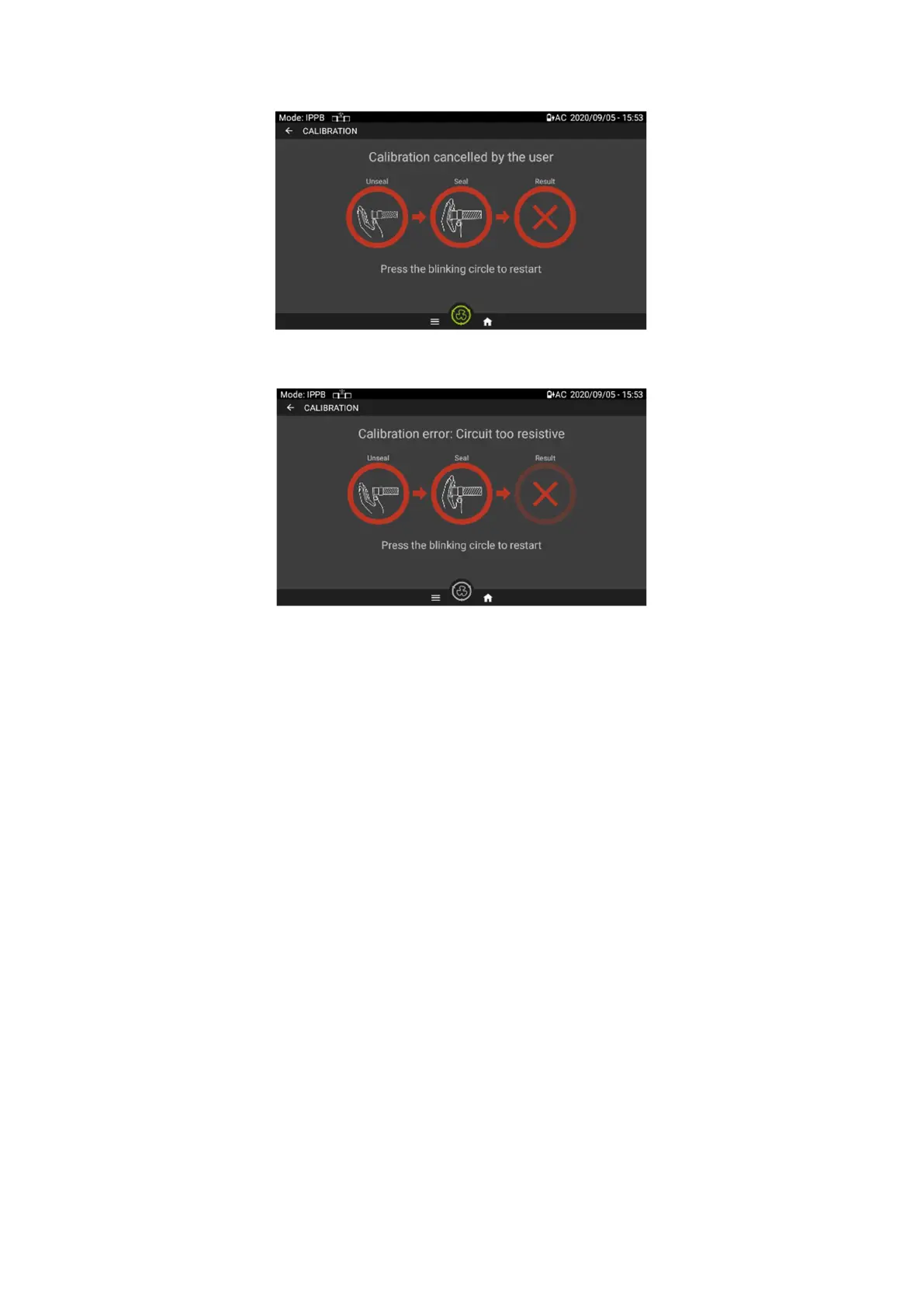 In case of error during the seal or unseal phases, the following message will be displayed: