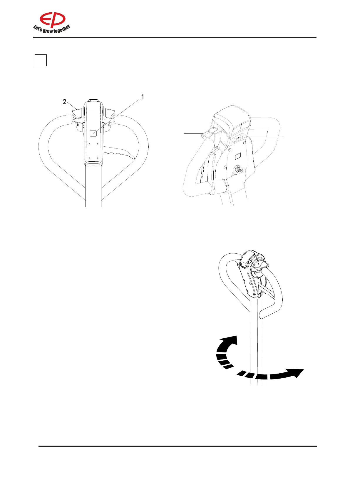 Keep the handle in the vertical state, and press creep speed button (1) and drive switch(2) at