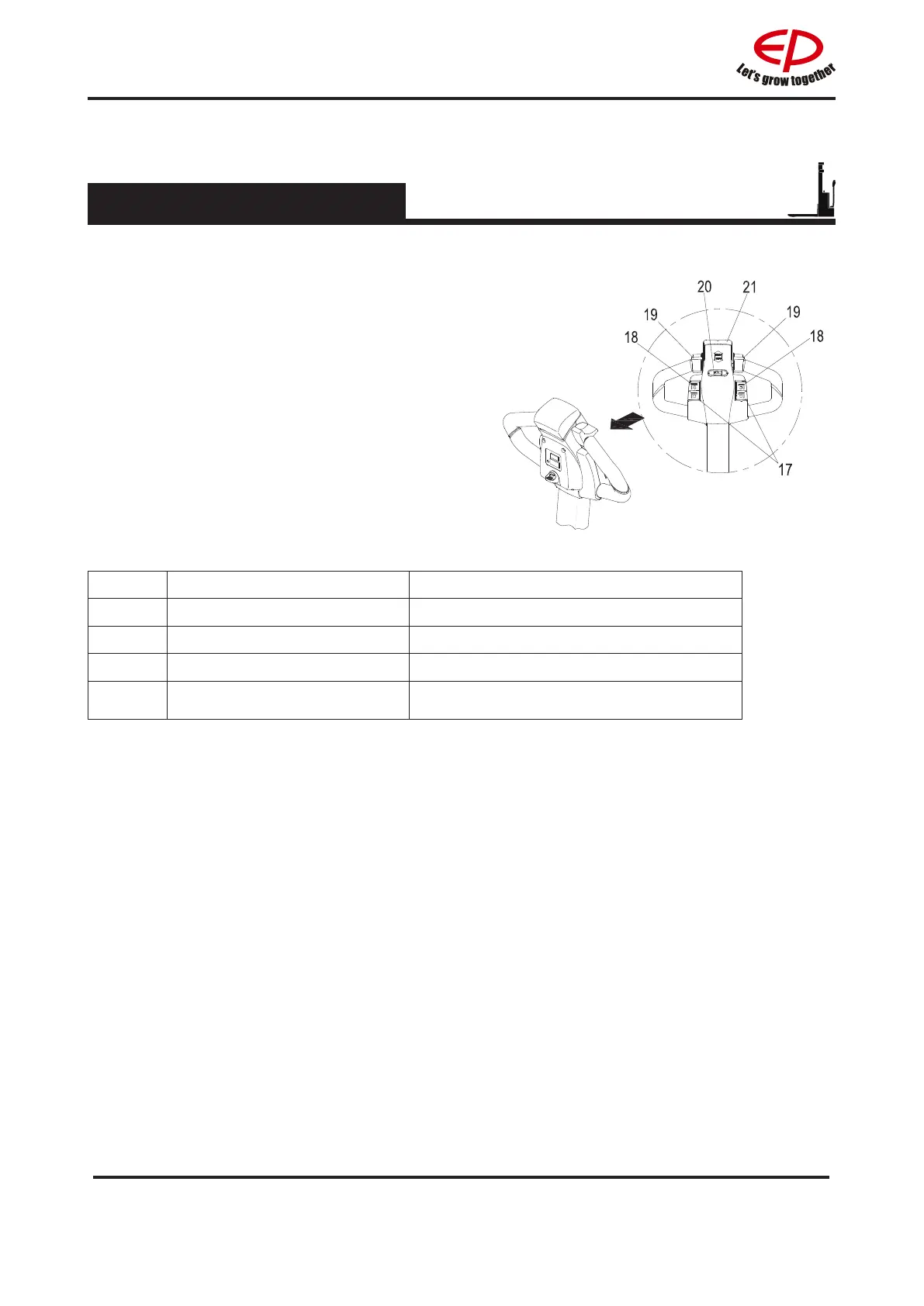 17 Lowering button Lower loading parts