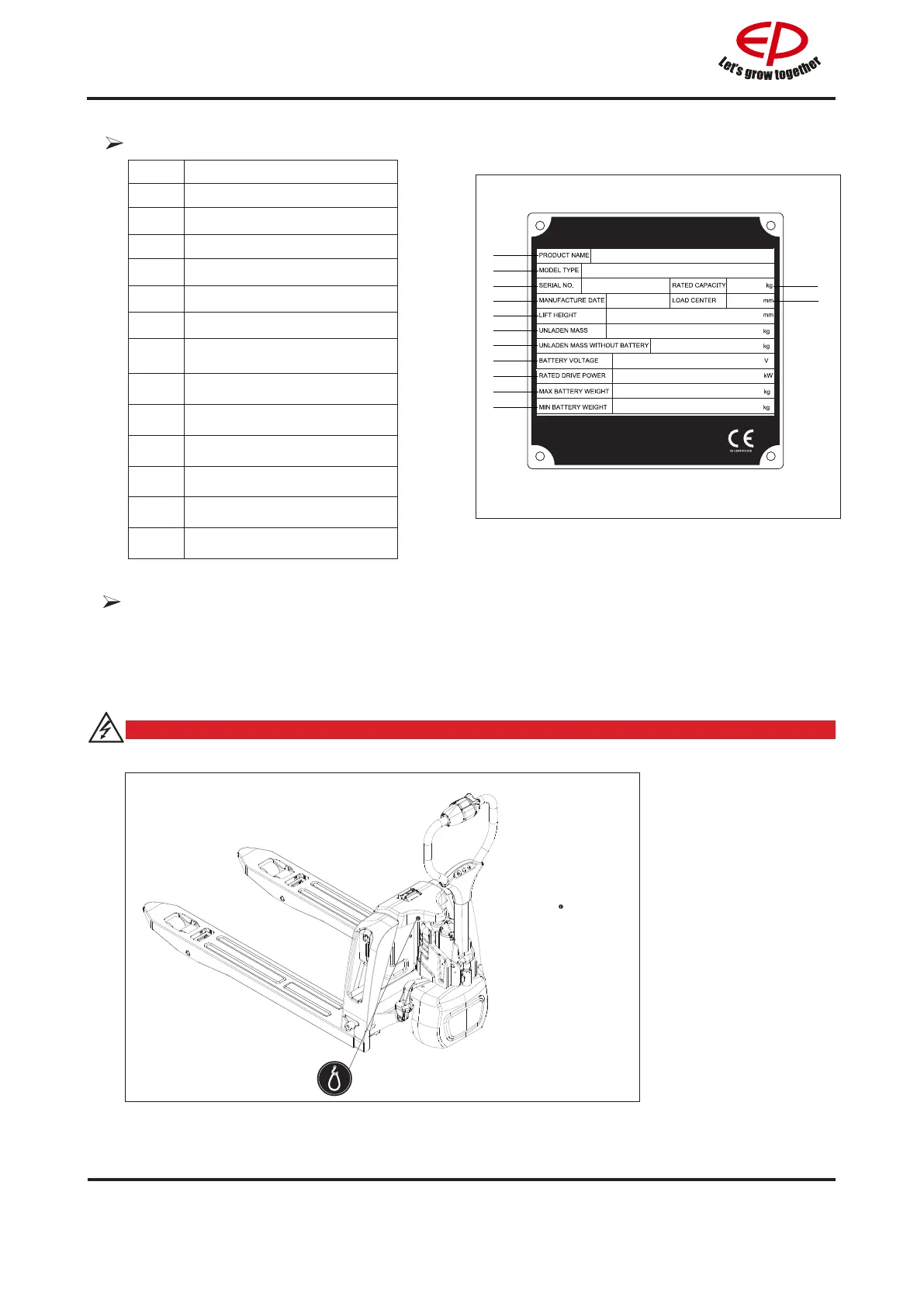 Personnel must not stand below or near the truck when the pallet truck is being lifted.