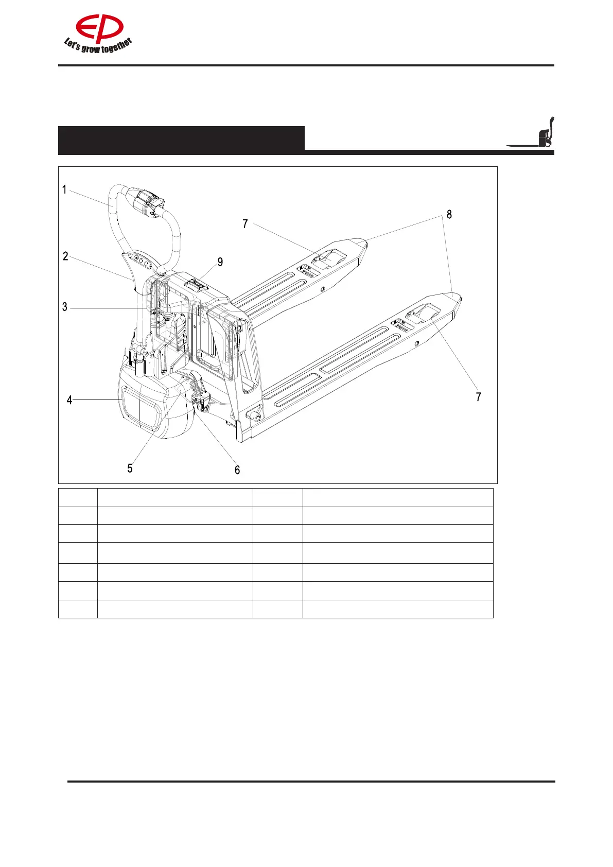1 Control handle 8 Fork arms