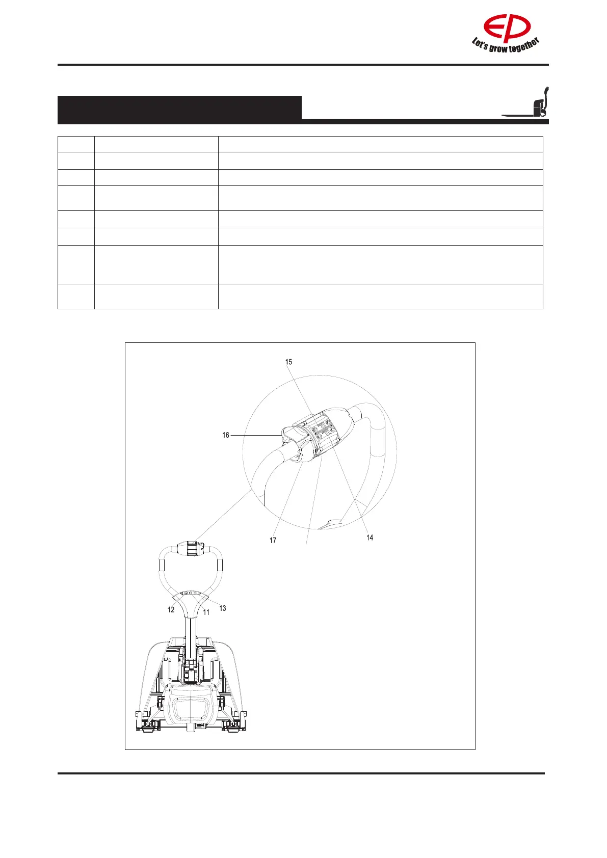 12 Fault indicating lamp Shows the error state of the truck( see the chapter error code)