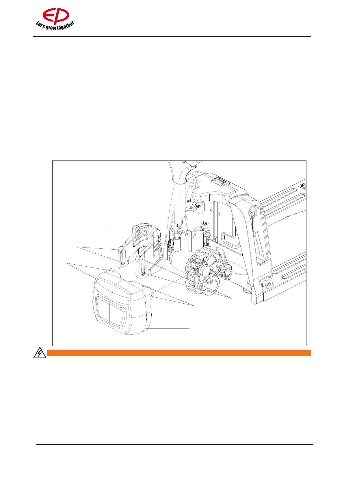 When the drive cover is removed, it is dangerous and does not allow operation of the truck.