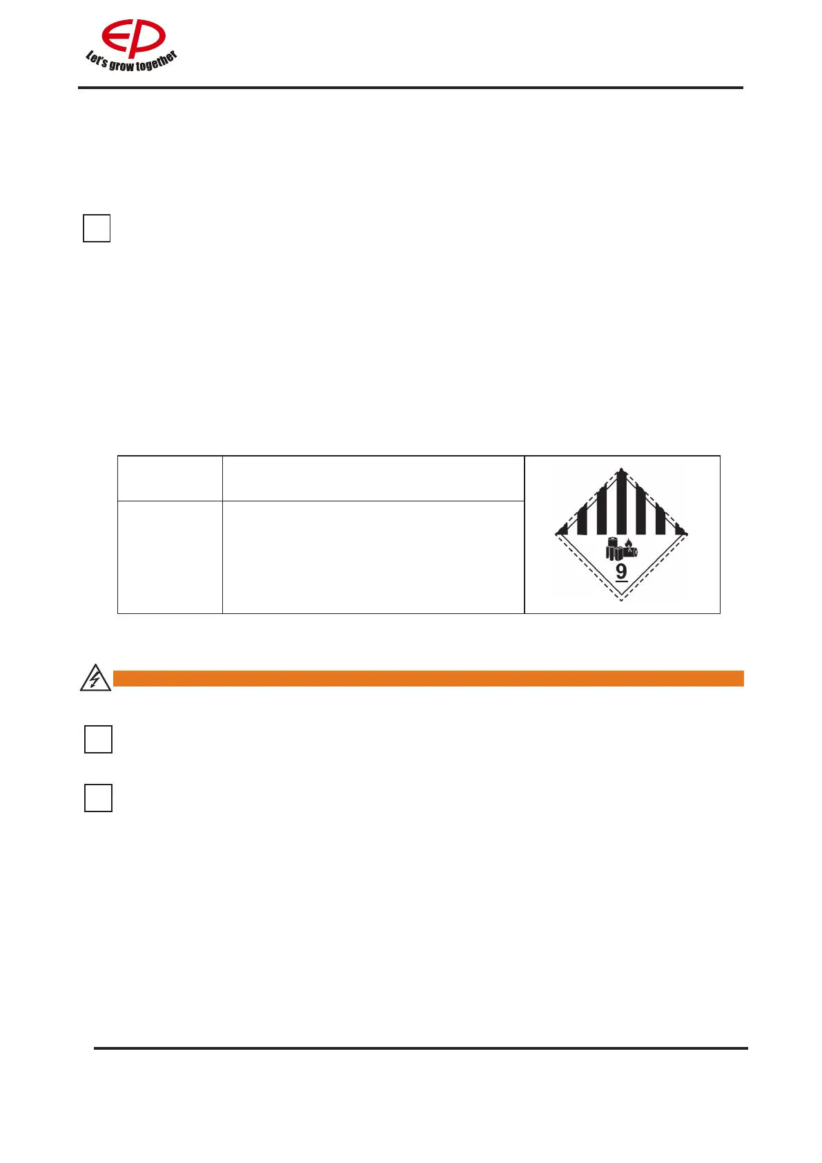 A class 9 danger label must be axed to the packaging for transport.