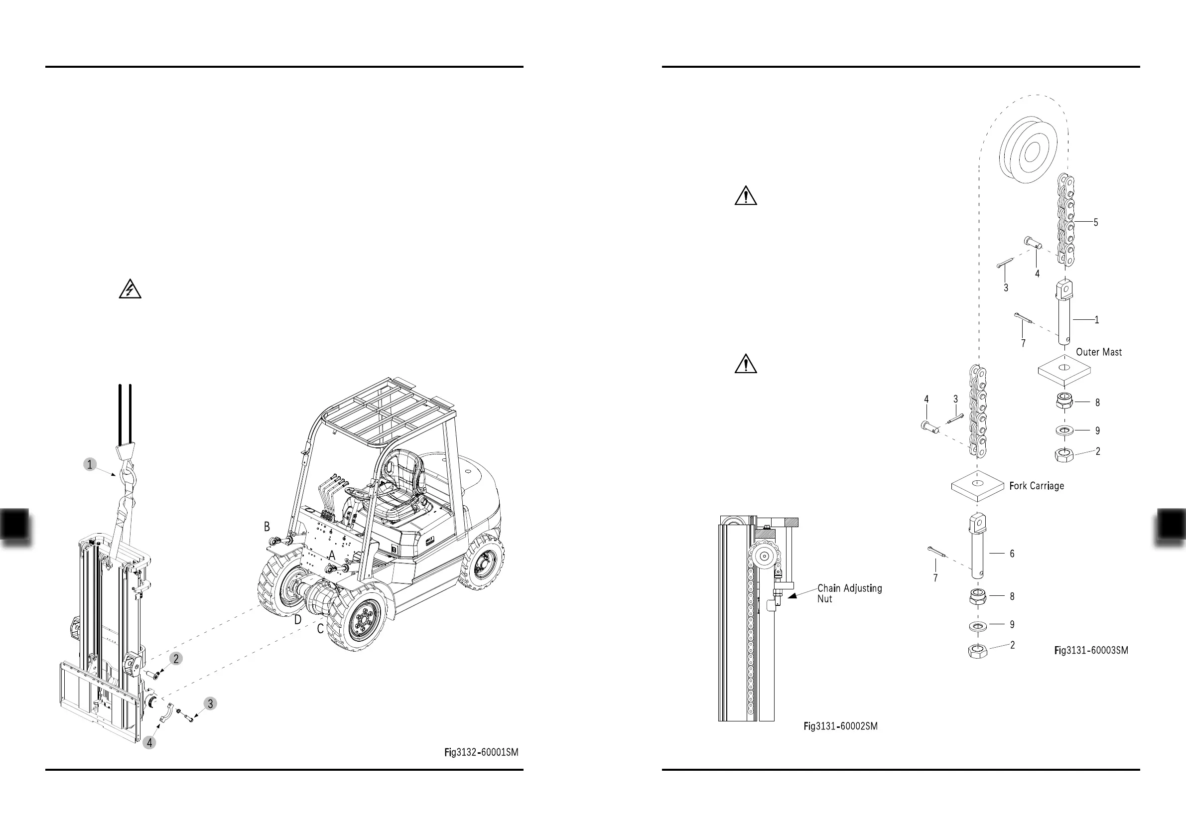 Loosen the lower jam nuts (2) on chain bolt (1,